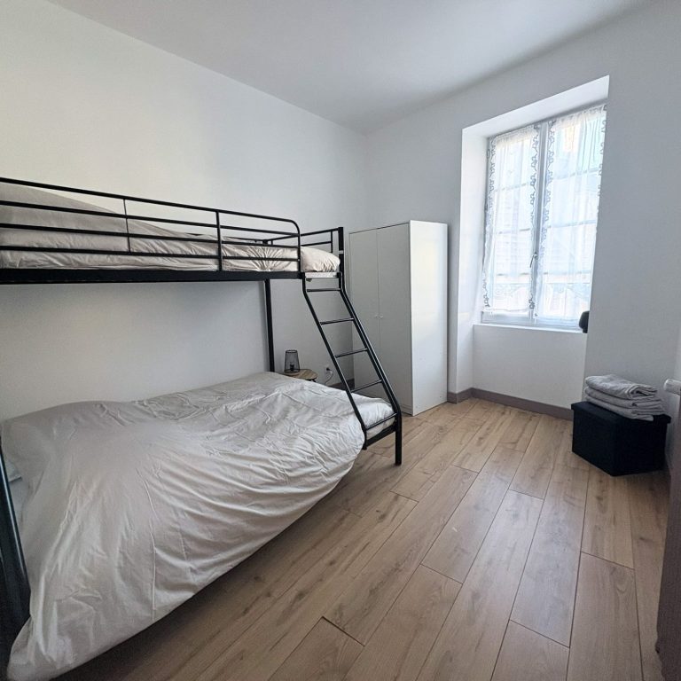 Bien sûr ! Voici une version amicale et invitante en français : "Nous avons trois charmantes chambres où vous pourrez accueillir jusqu'à 7 personnes. C'est l'endroit parfait pour créer des souvenirs inoubliables ensemble !"